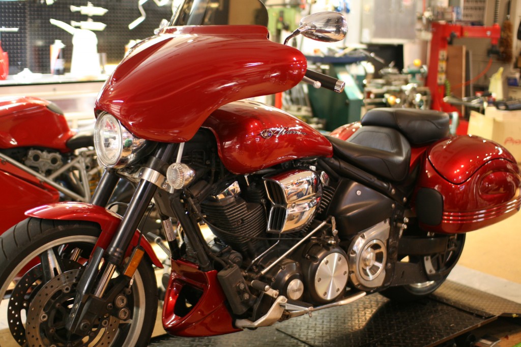 サイドパニア フェアリングはアメリカから輸入後 スタジオグラッデンさんでペイントしてもらいました。 上質な塗装状態にオーナーさんご満悦(笑)